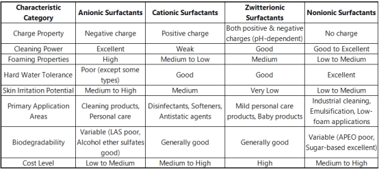 Picking the ideal surfactant calls for factor to consider of multiple elements, consisting of application requirements, price, environmental conditions, and regulative needs. The adhering to table summarizes the key characteristics of the 4 main surfactant classifications: